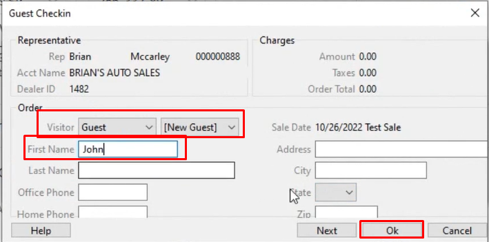 - Fill out the guest name and click 'OK'