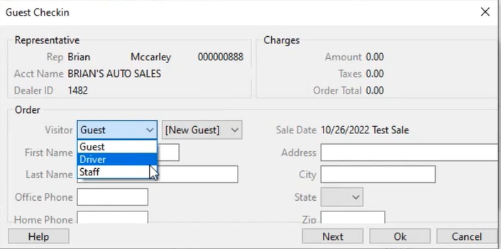- Here you can choose the type of visitor in this example we choose Driver.