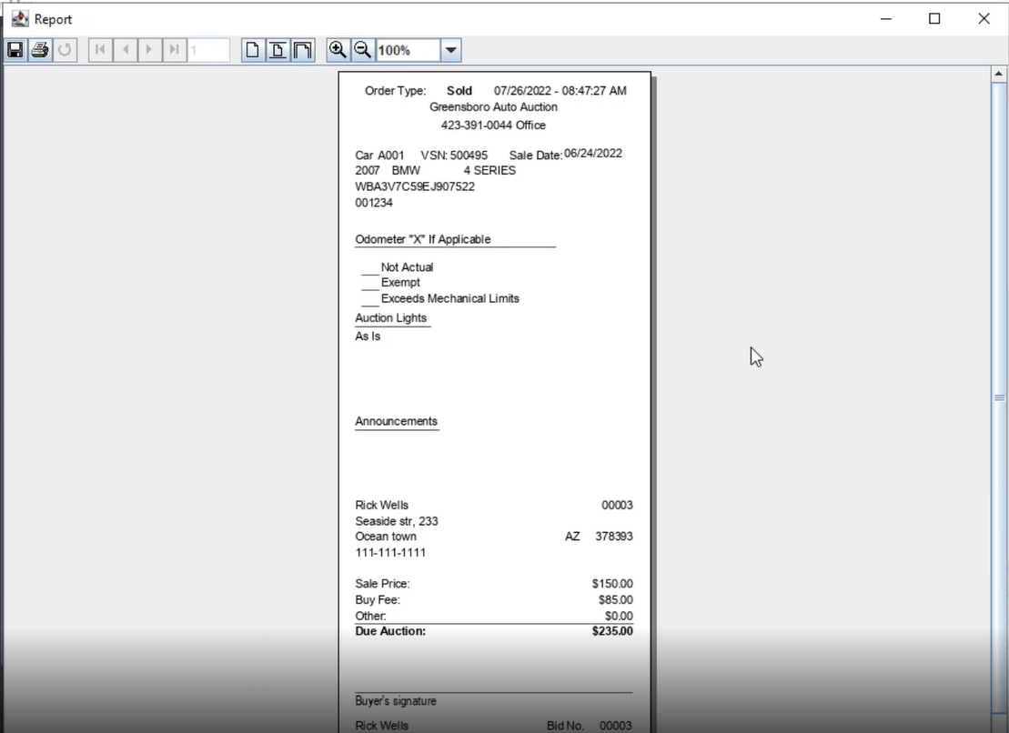The Block ticket is a small version of the Buyer Invoice but is not a legal document. The Block Ticket report can be printed from the Dealer Profile and Vehicle Block applications.