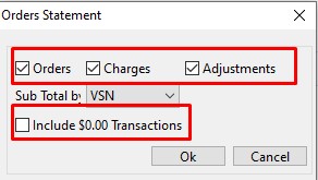 - You may choose to 'Include $0.00 Transactions since most orders have no amount associated with them. You may also sub-total by VSN or Description.