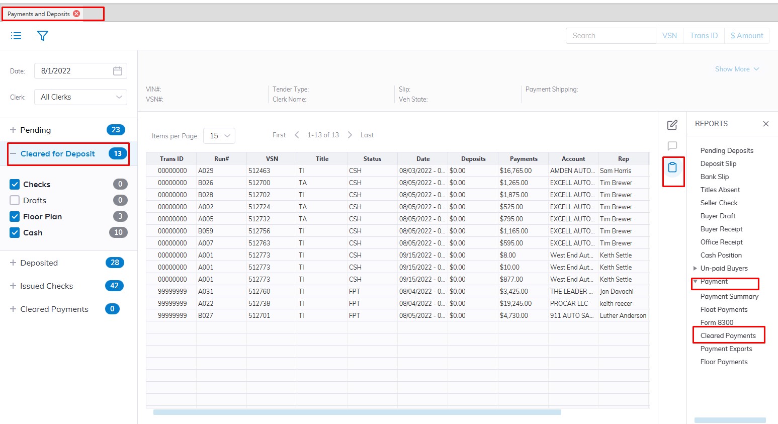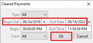 - Select the Cleared Payment Report