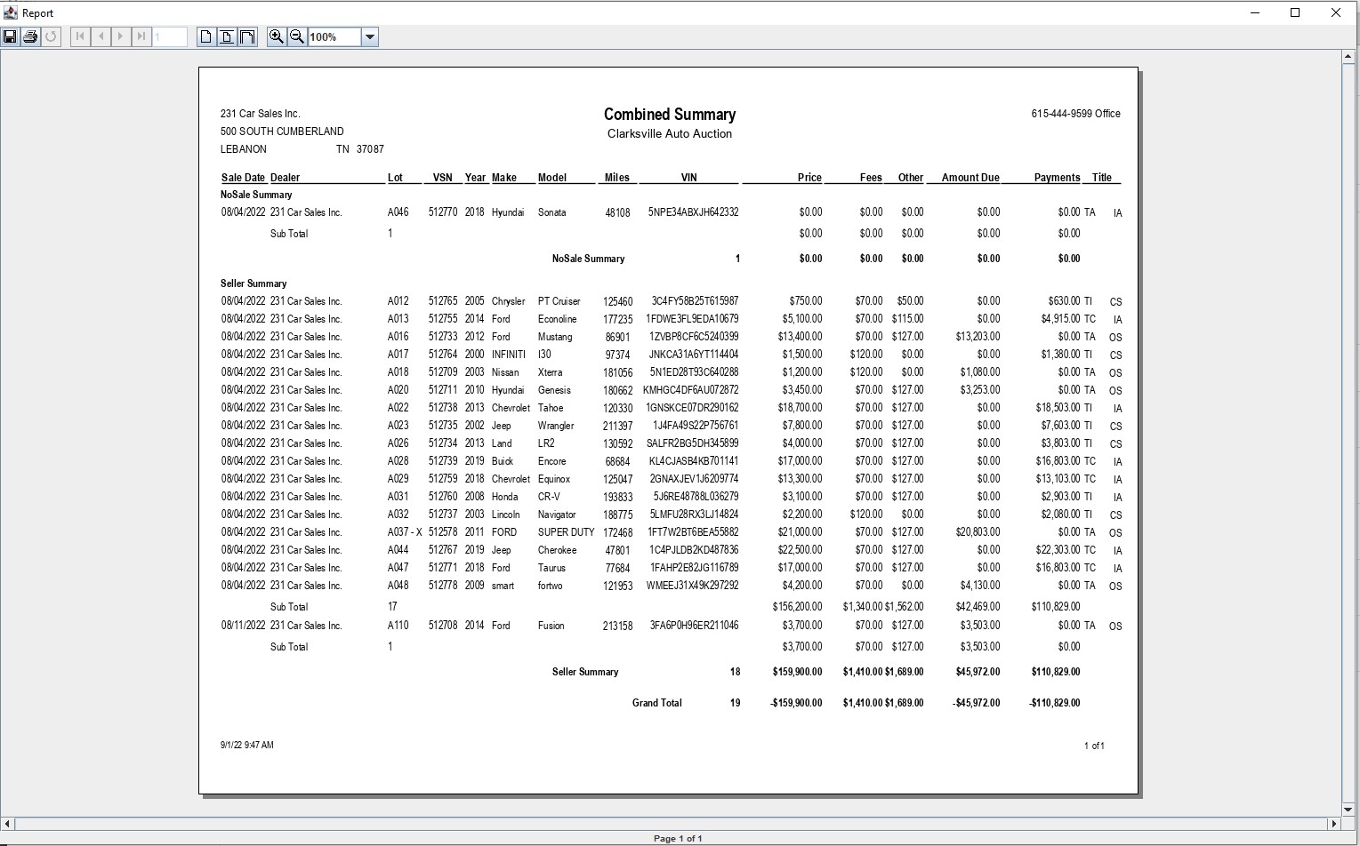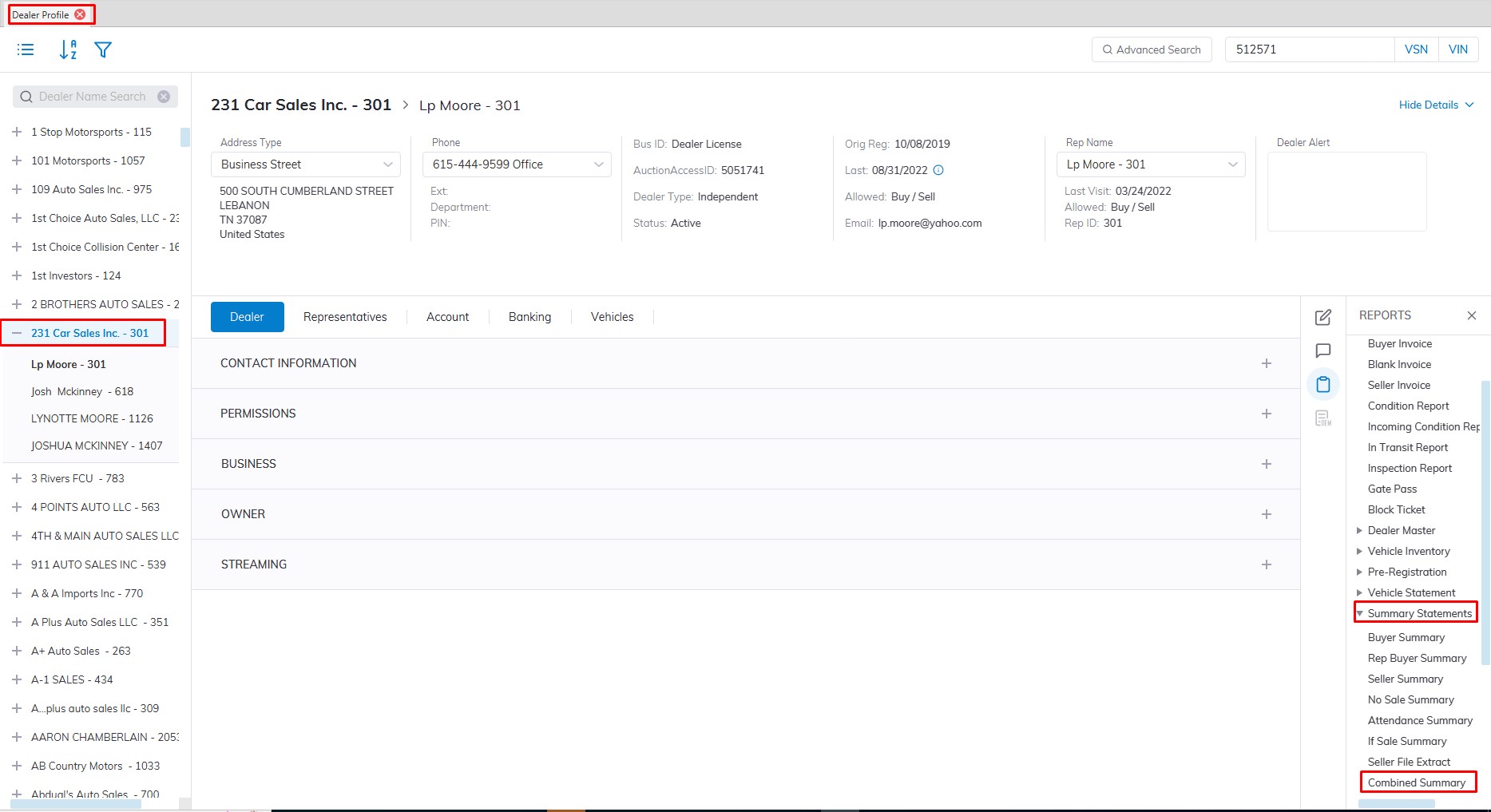 - The Dealer Profile application > Reports > Summary Statements> Combine Summary.