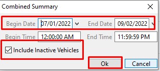 - Next, you need to select the "include Inactive Vehicles" checkbox so you can get a comprehensive report on everything.