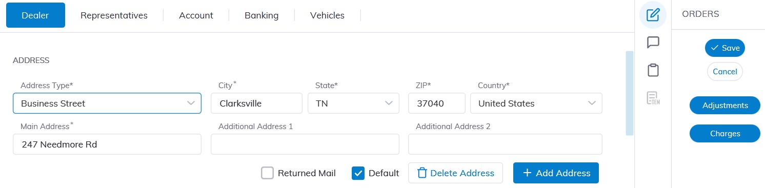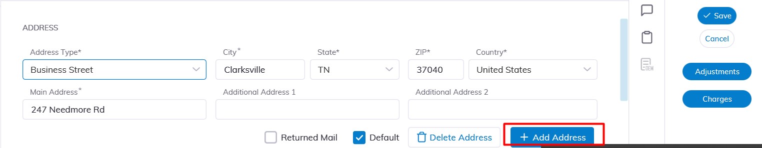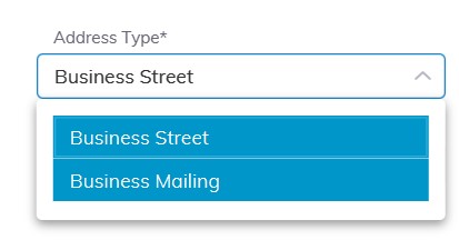 Select the Address Type: e.g. Business Mailing, Business Street, Main Office Street, etc.