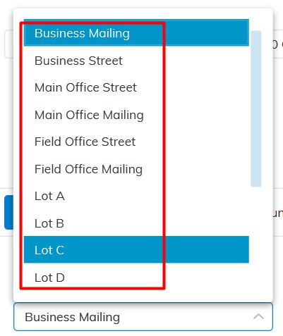 Choose the Address Type: e.g. Business Mailing, Business Street, Main Office Street etc.