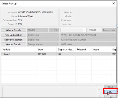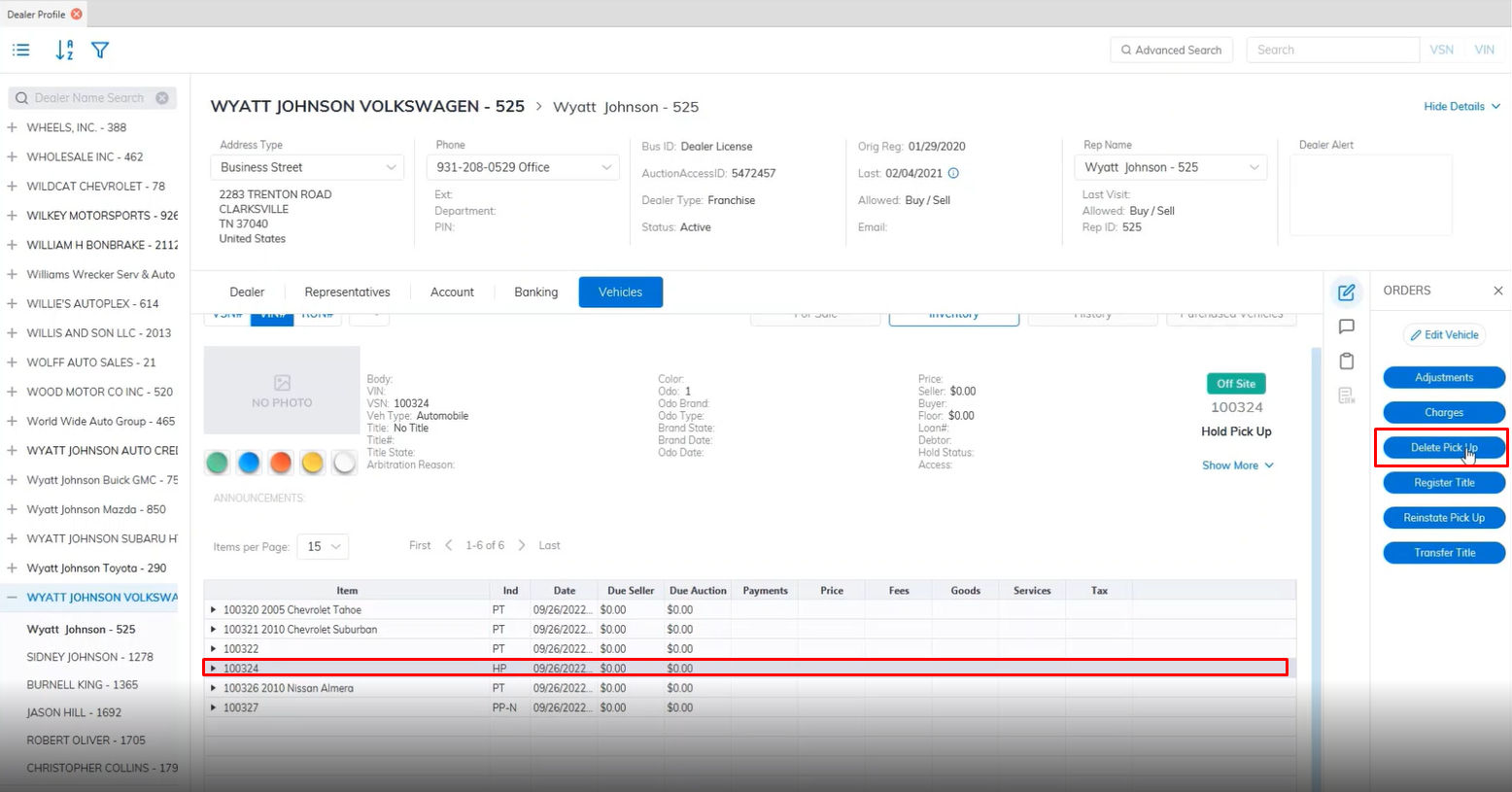 - Then select the 'Delete Pick Up' order under the Orders menu on the right.