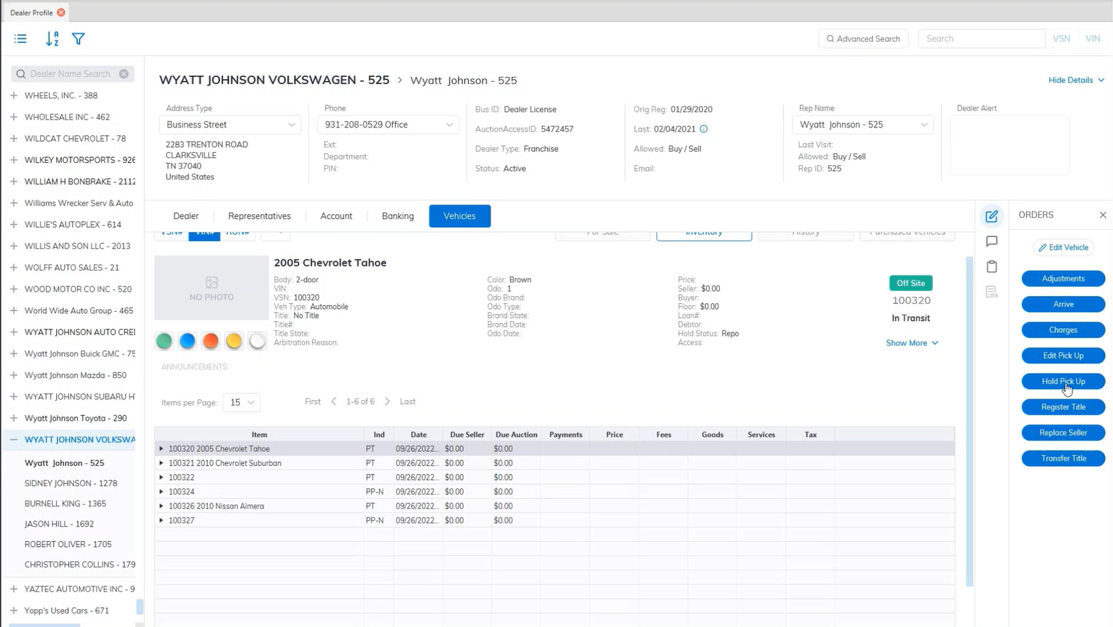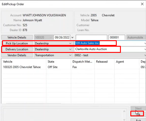 - Then select the 'Edit Pick Up' order under the Orders menu on the right.