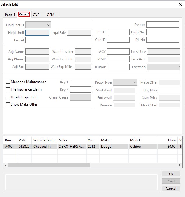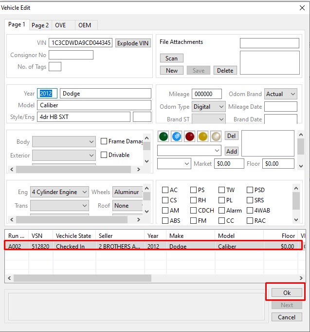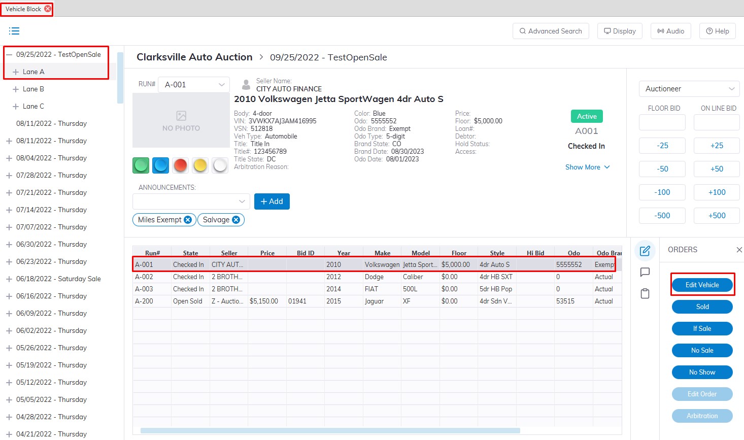 - Select the 'Sale Date' and 'Lane' where the Vehicle you wish to Edit is Checked In.