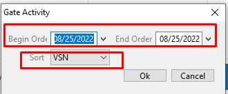 After selecting the report you will be prompted for the 'Begin' and 'End' dates for the order.