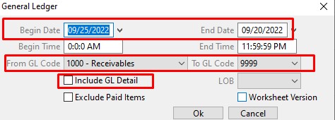 - For Detail, GL report Select the 'Include GL Detail' checkbox