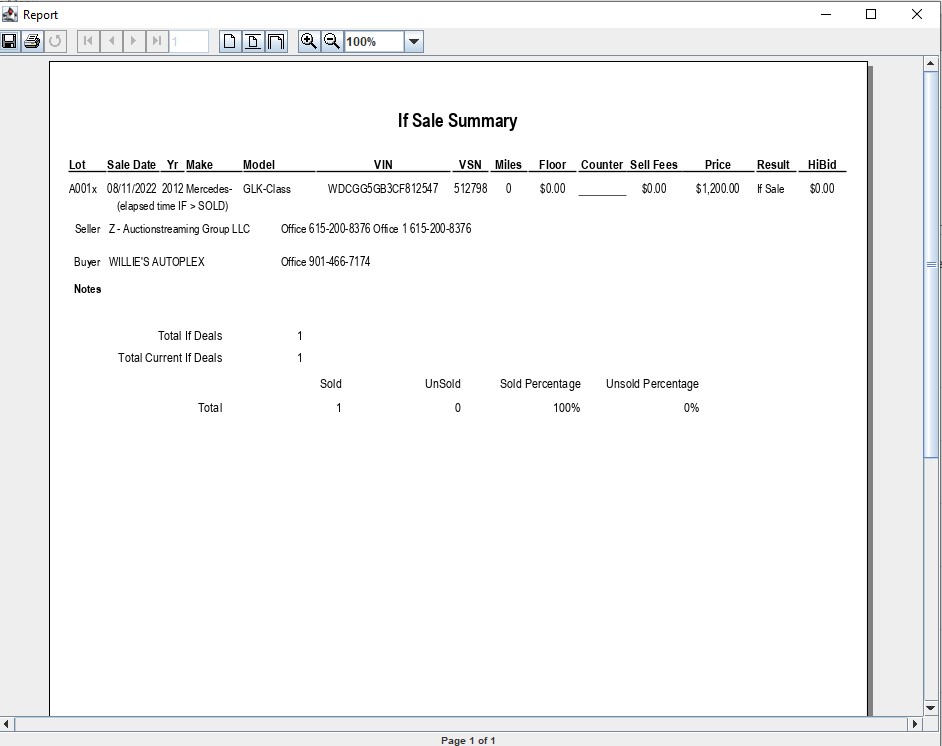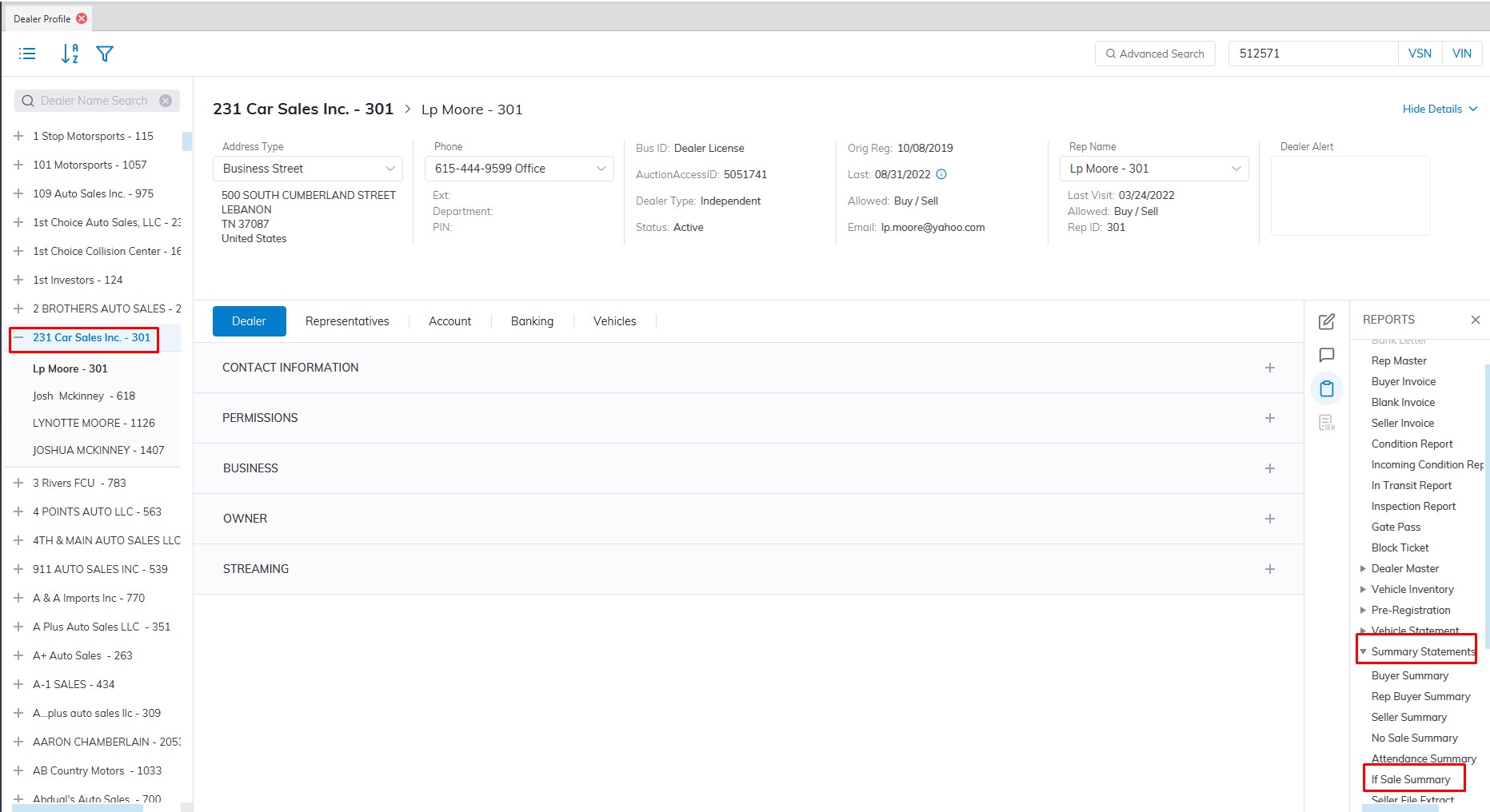 - The Dealer Profile application > Reports > Summary Statements> IF Sale Summary.
