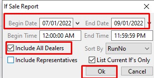 - Next, you need to select the "include All Dealers" checkbox so you can get a comprehensive report on everything.