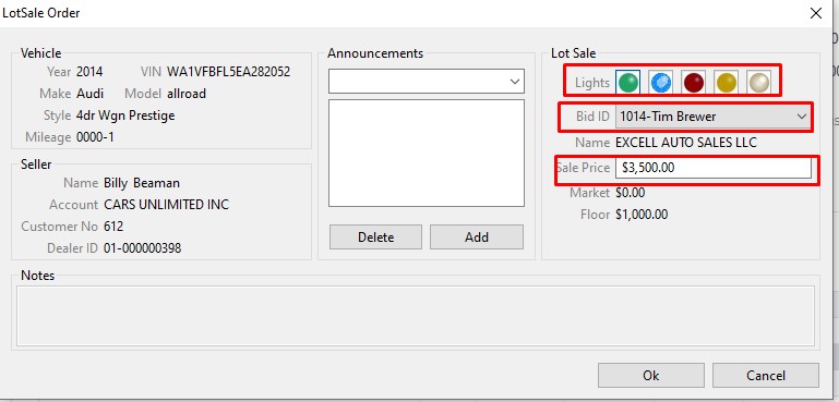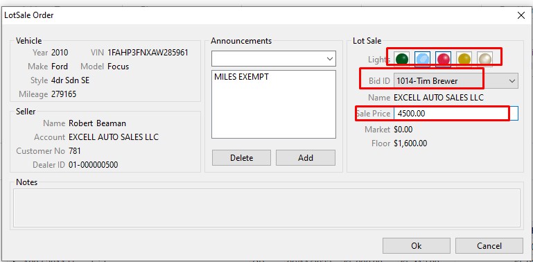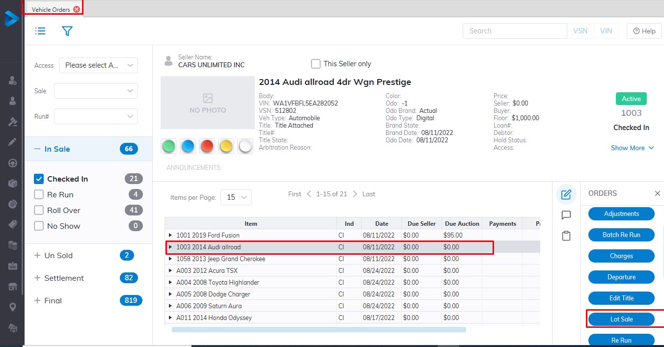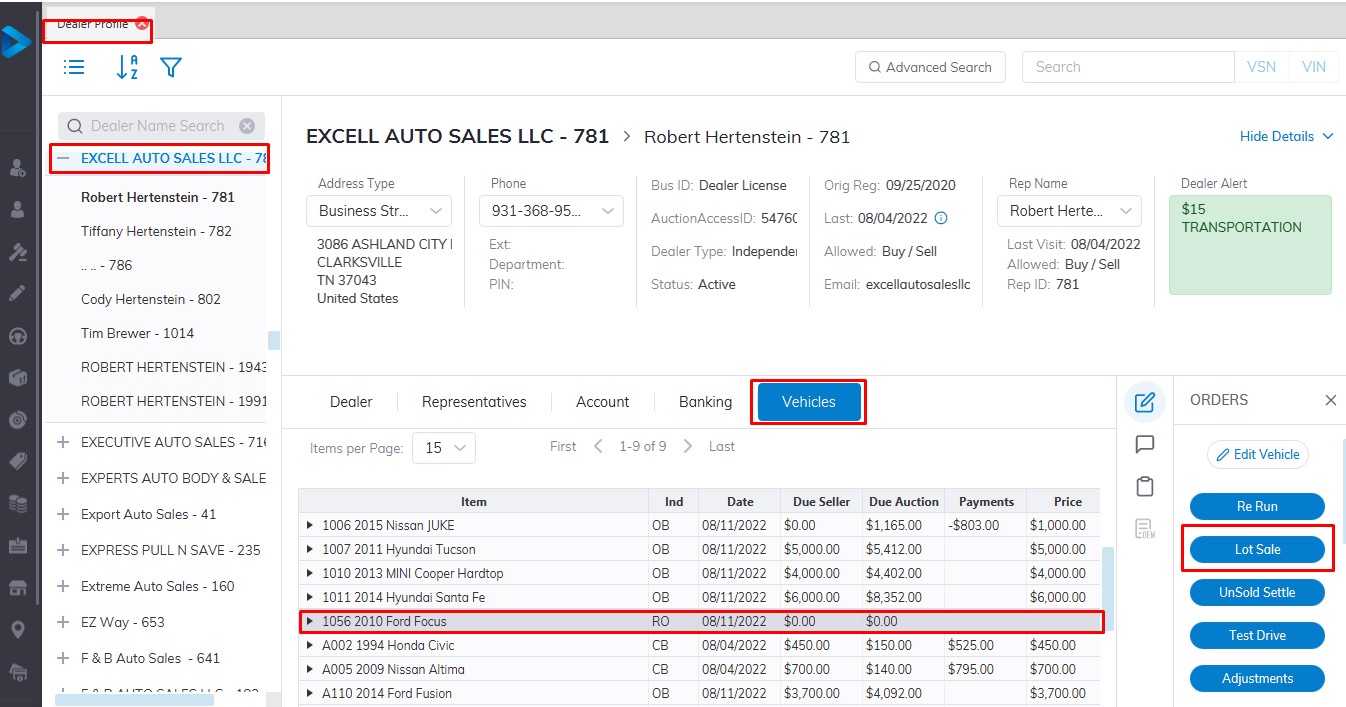 The Lot Sale is used to Sell Vehicles that are not on the Block. The order may be launched from two places: