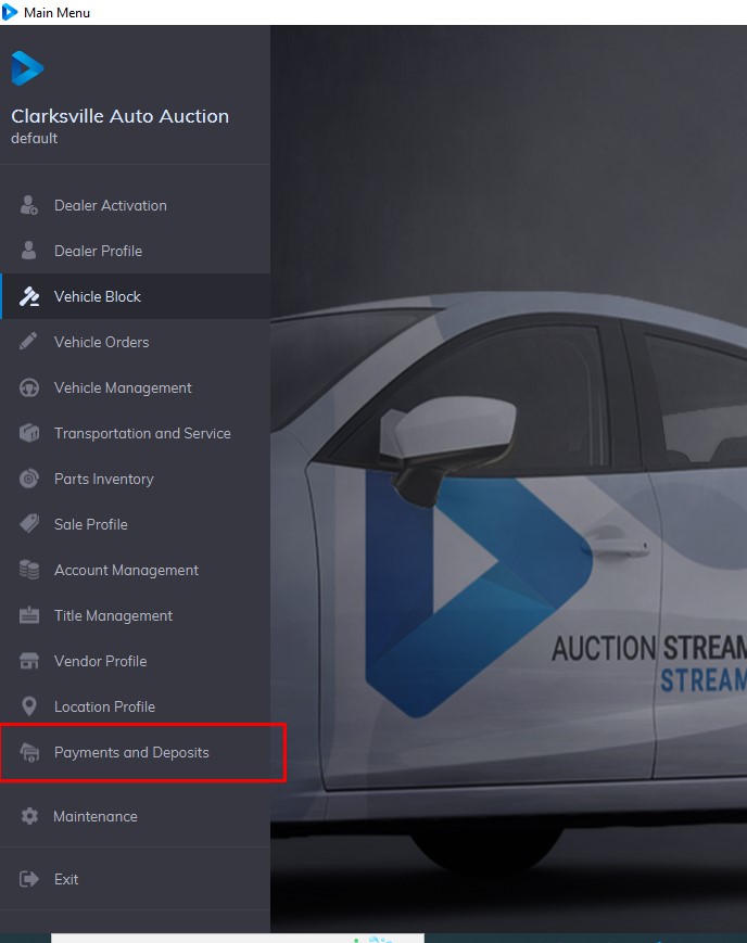 Payments and Deposit application - contains all of the payments made within the date range shown just above the Payments to Auction button. To view a different date range re-select the beginning and/or ending dates.