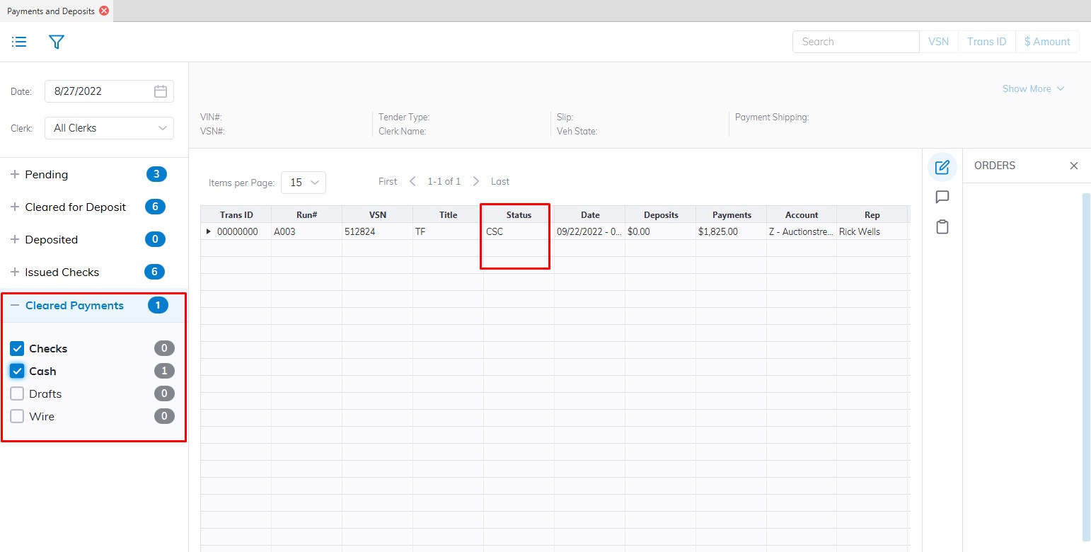 - You may move the payment to 'Cleared for Deposit' using a Seller Settlement order