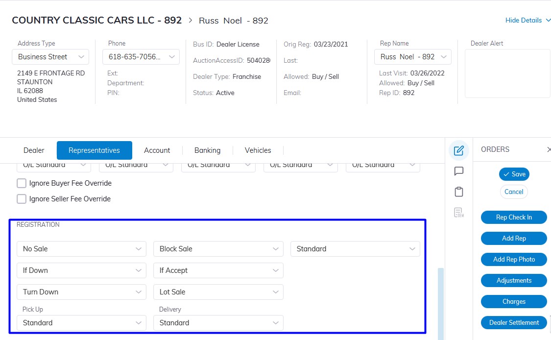 Select Dealer Profile Application>> Select the Dealer>>Select Representative Tab