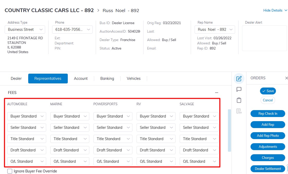Note: Fees are specific by both individual Representatives and the Vehicle Type.