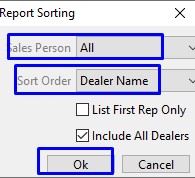 - You may include any, all, or just one salesperson in the report or sort by: