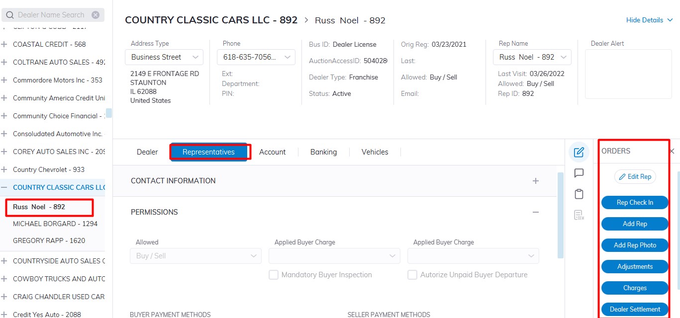 Select Dealer Profile Application>> Select the Dealer>>Select Representative Tab