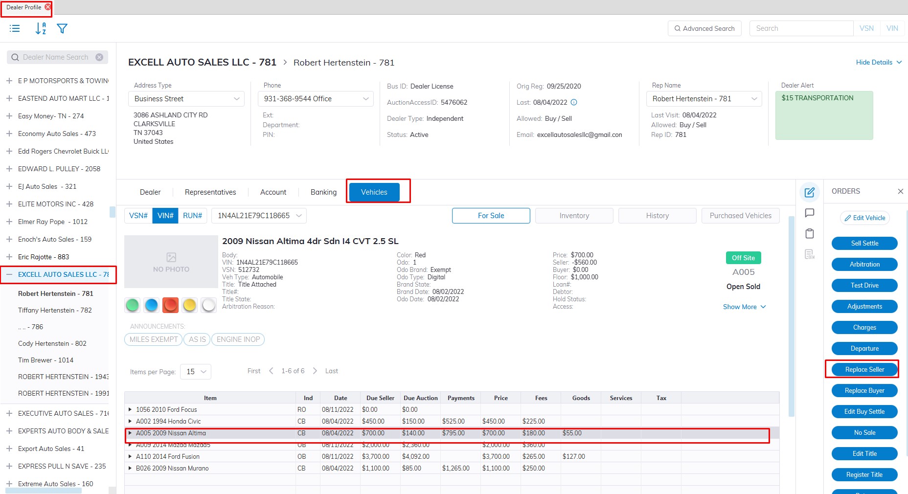 - Select the Dealer where the vehicle you wish to replace Buyer.