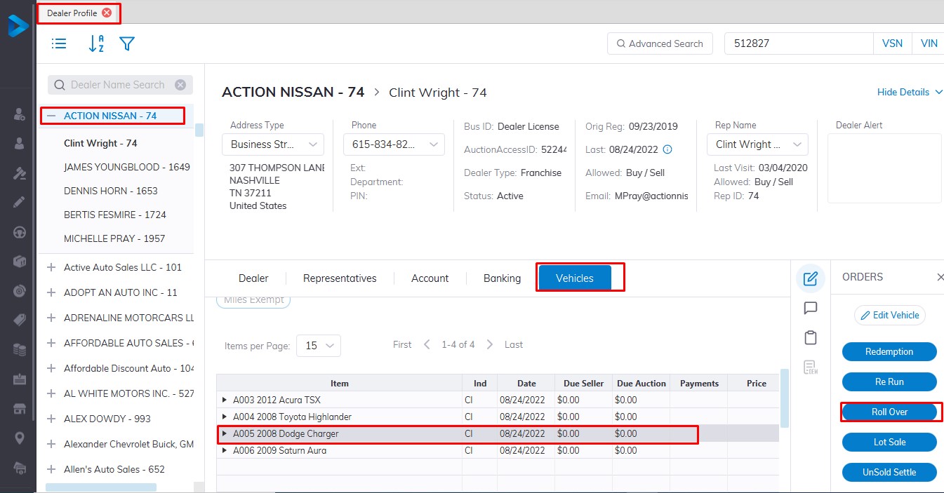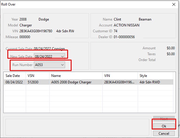 You may not select Run Numbers that have already been Checked In. It may be necessary to Release a reserved Run Number from another Dealer before you can use it. Here we select Run Number A053.