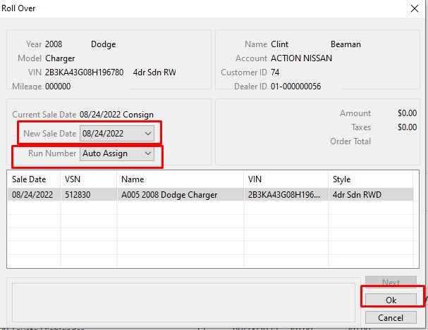 Run Number or accept 'Auto Assign' and Sale Date from the list box