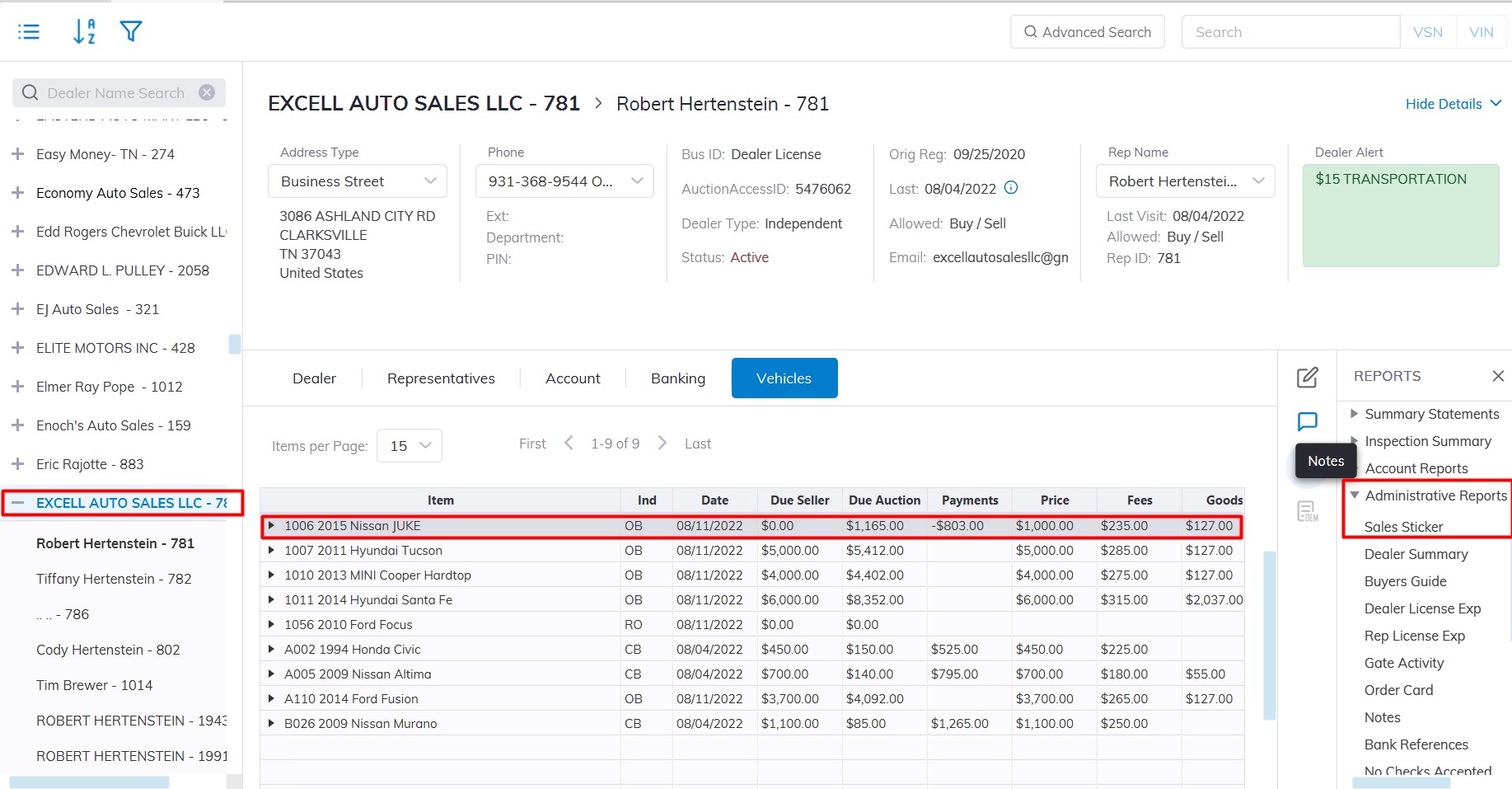 The Dealer Profile application> Reports > Administrative Reports > Sales Sticker
