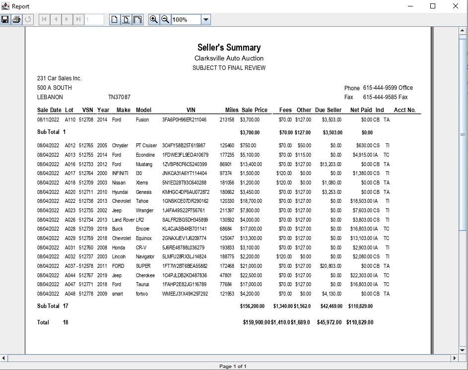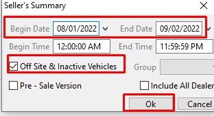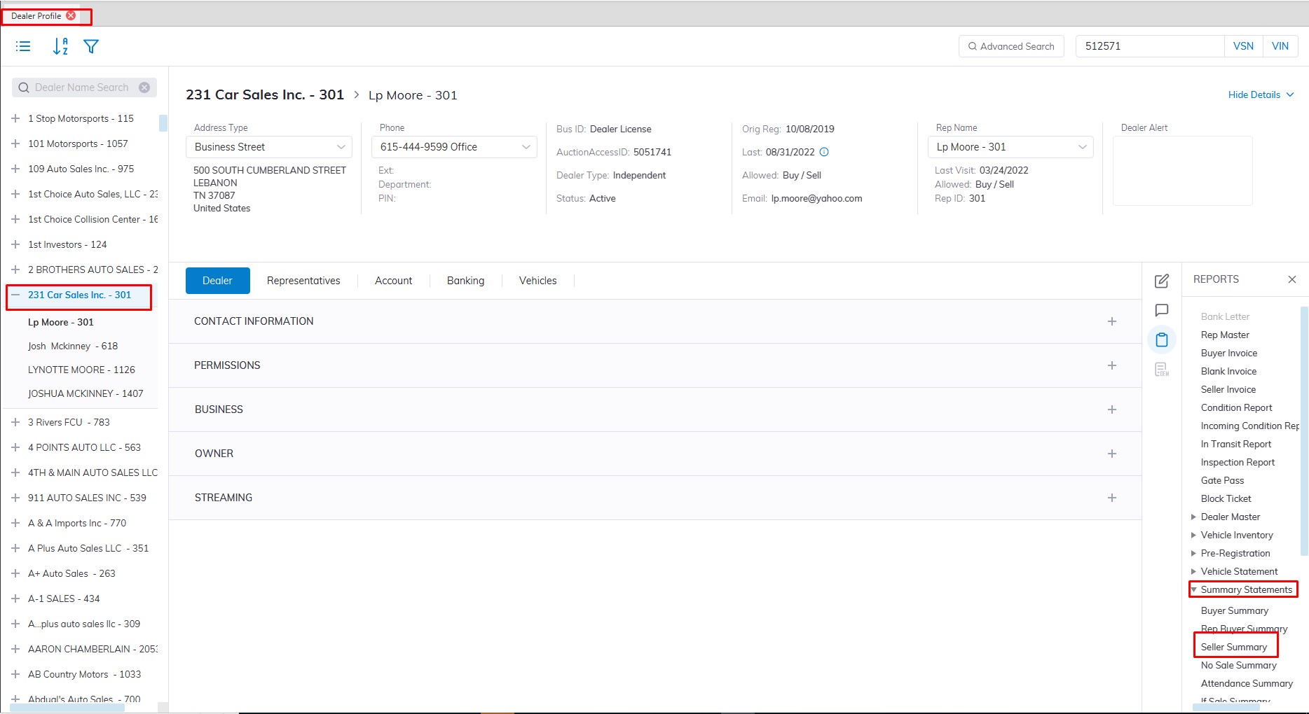- The Dealer Profile application > Reports > Summary Statements> Seller Summary.