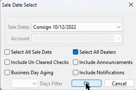 - You can customize your report by selecting a specific Dealer or selecting the Select All checkbox for all dealers.