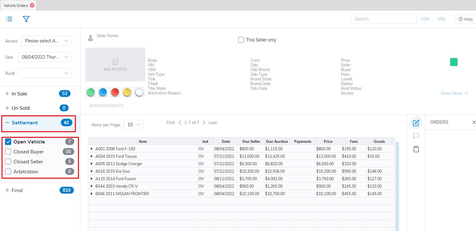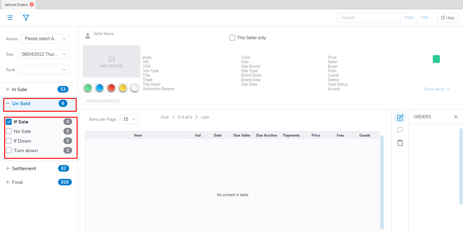 - You may do an UnSold Settle order if the Seller wishes to remove the Vehicle from the Sale.