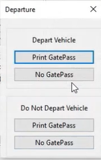 - Here you will be prompted Option1: Depart the vehicle and Print a GatePass or not Print GatePassOption2: Do Not Depart the vehicle and print GatePass or not print GatePass